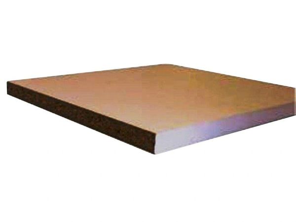 Made from compressed wood fibers and adhesives, sometimes using a mold. Often made from wood scraps and waste, making it less expensive than plywood. Holds up well against temperature changes but will swell when exposed to water and moisture. Edges should be sealed to avoid water damage. Frequently used in furniture construction, which is why it is sometimes also called furniture board.