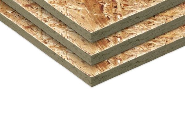 Made from compressed layers of wood chips and adhesives. Has an unfinished appearance. Has a strong, consistent density. Usually heavier and less expensive than plywood. May degrade faster than plywood due to moisture. The most-used sheathing and subfloor material.